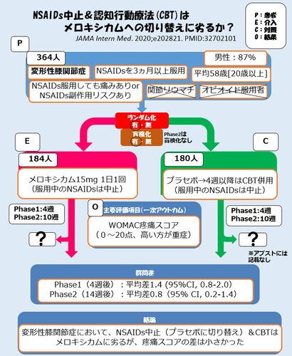 高齢者のスタチン中止のRCTがでたときに、今後は薬を中止(プラセボに切り替える)するRCTが増えてくるだろうと勝手に思っていたのですが、痛み止め(NSAIDs)の中止っていうRCTがでました。 Nonsteroidal Anti-inflammatory Drugs vs Cognitive Behavioral …