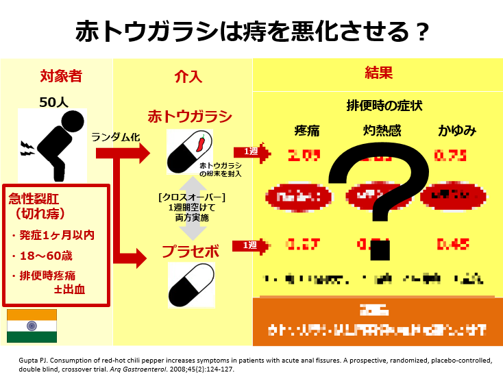 ねこでも読める医学論文 第24話「赤トウガラシは痔を悪化させる?」 / 地域医療ジャーナル